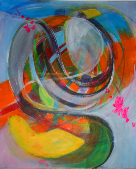 Meine Gemälde entstehen in einem kreativen Prozess aus Farb- und Formgebung, die durch Übermalungen, Linien und geometrischen Formen eine Gesamtkomposition